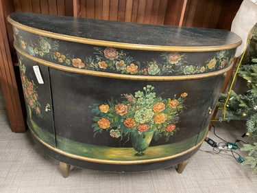 BLACK/DARK GREEN, HALF MOON SHAPE, PAINTED FLORALS, TWO DOORS/COMPARTMENTS