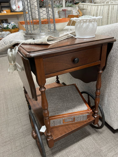 CHERRY WOOD DROP LEAF TEA CART W/BOTTOM SHELF & 1 DRAWER