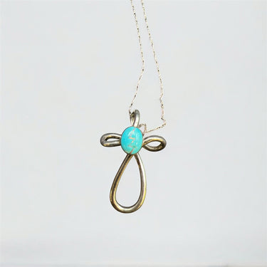 20" STERLING SILVER CHAIN WITH SWIRLED CROSS PENDANT WITH TURQUOISE STONE