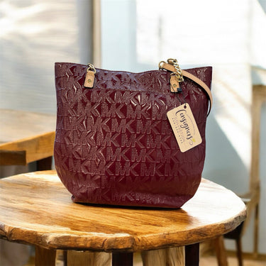 MICHAEL KORS JET SET PATENT LEATHER CHAIN TOTE BAG BURGUNDY