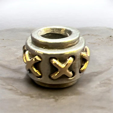 PANDORA STERLING SILVER & 14K GOLD ACCENTS "SEEING STITCHES CHARM "GOLD X's"