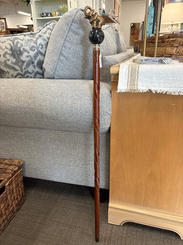 WALKING STICK, MARBLE BALL, ELEPHANT TOP COPPER DETAIL, WOOD, 36"