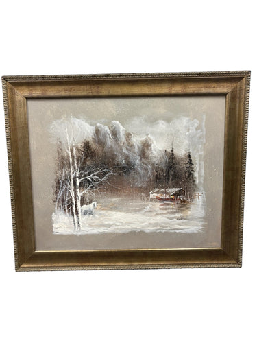 GASTON - WINTER SCENE WHITE HORSE CABIN FISHING BOAT 30" H X 36" L