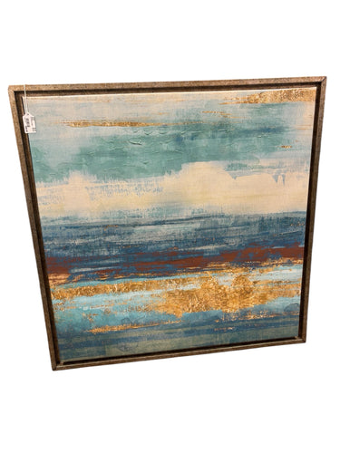 MODERN,ANTIQUED SILVER FRAME,HORIZONTAL,CONTEMPORARY BLUE/GOLD TONES ON CANVAS tmh