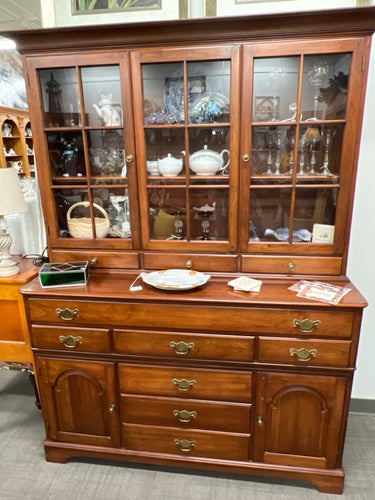 CHERRY CHINA CABINET, 3 DOORS ON TOP, 2 DOORS ON BOTTOM, 7 DRAWERS js
