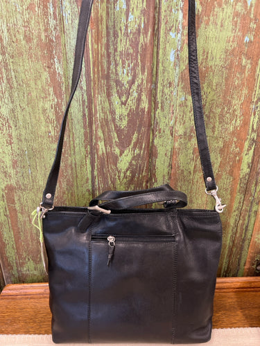 BLACK LEATHER HANDBAG TANO 10" H X 13" W