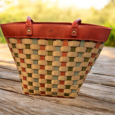 LONGABERGER, TO GO WOVEN BASKET HANDBAG, PINK, GREEN, BLUE WEAVE