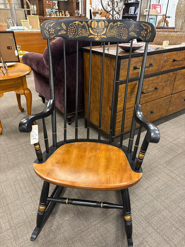 HITCHCOCK, ROCKING CHAIR, MAPLE WOOD, BLACK , GOLD DESIGN, 20" x 24" x 16"
