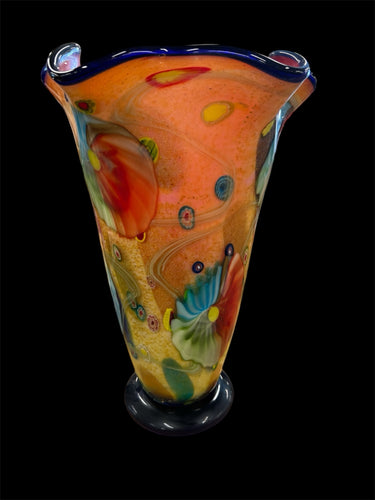 DALE TIFFANY HAND BLOWN RAINBOW COLORS RUFFLED VASE 14"