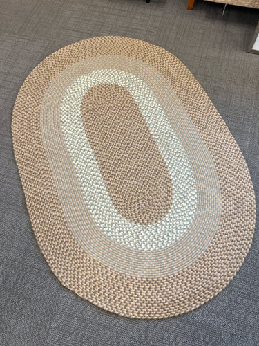OVAL BRAIDED INDOOR RUG IVORY AND TAN 60x40 js