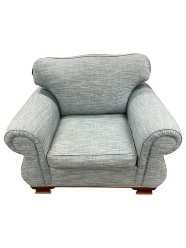 TEAL OVER-STUFFED CHAIR, LOSE BACK CUSHION, WOODEN LEGS