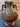 URN SHAPE BROWN CERAMIC W/GOLD DESIGN OVAL LINEN GOLD SHADE
