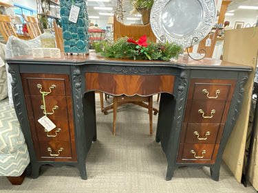 PAINTED BLACK DESK W/CHERRY WOOD DRAWERS & TOP tmh