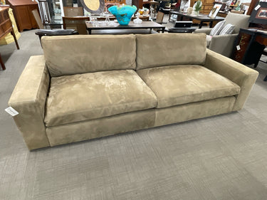 ARHAUS, "KIPTON" WIDE ARM NUBUCK LEATHER SOFA, TAN, " AS IS"