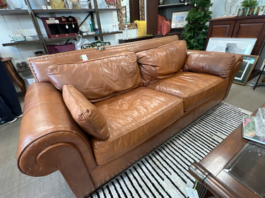 BERNHARDT BROWN OATMEAL LEATHER SOFA js