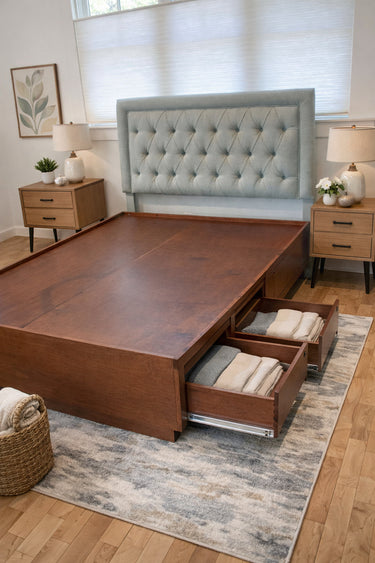 QUEEN PLATFORM BED CHERRY WOOD CEDAR 4 DRAWERS (headboard not included) rt