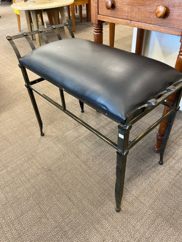 RECTANGULAR BENCH W/BLACK FAUX LEATHER SEAT, METAL BASE js