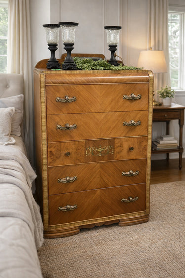 VINTAGE ART DECO WATERFALL CHEST OF DRAWERS AND CHEVRON DESIGN