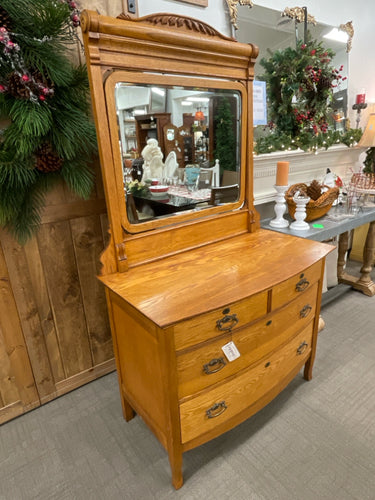 VINTAGE HONEY OAK DRESSER WITH MIRROR, 4 DRAWERS