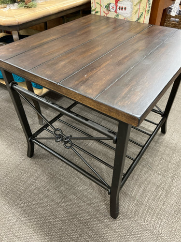 WOOD TOP END TABLE W/METAL BASE, BOTTOM SHELF js
